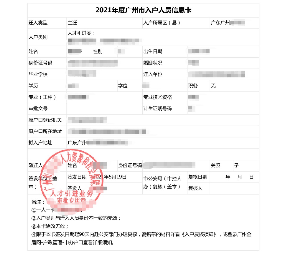 杨小姐通过单位挂靠人才引进随迁入户广州市白云区
