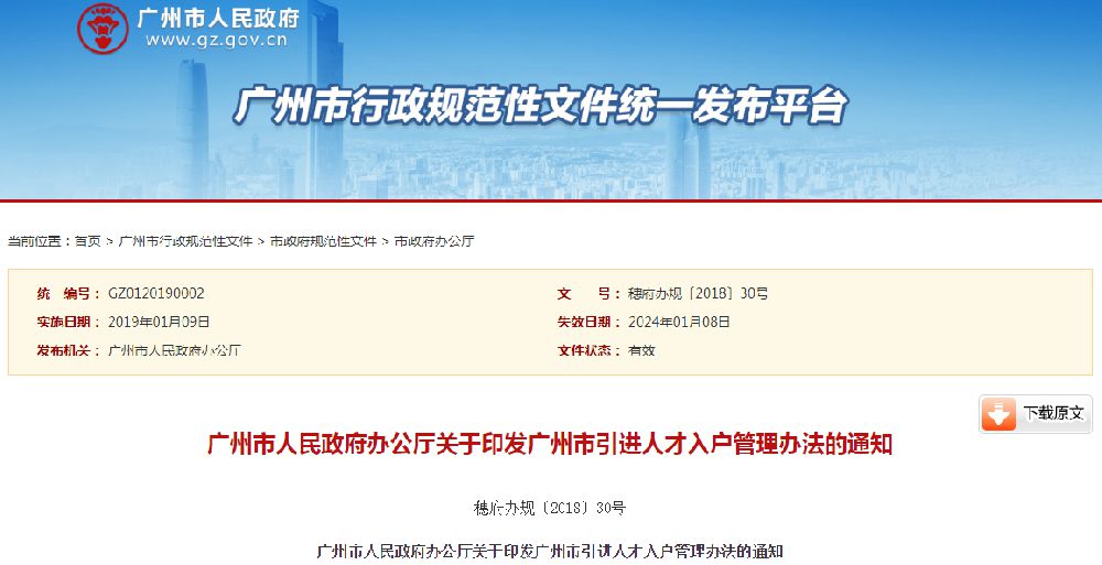 穗府办规〔2018〕30号广州市人民政府办公厅关于印发广州市引进人才入户管理办法的通知各区人民政府,市政府各部门、各直属机构: